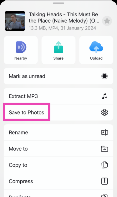 ステップ9:選択します写真に保存しますビデオをに移動しますカメラロール。