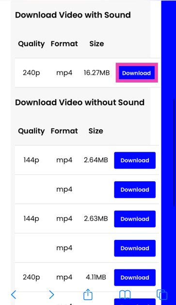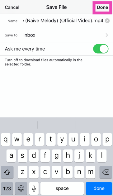 ビデオはダウンロードフォルダーに保存されます。このメソッドは正常に機能しますが、iPhoneにビデオファイルを保存するためのはるかにスムーズな方法を提供するため、ReadDleでドキュメントアプリを使用する方が良いです。 Safariでは、侵入的な広告にさらされる可能性があります。