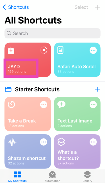 ステップ4:起動しますショートカットアプリとJaydをタップします。