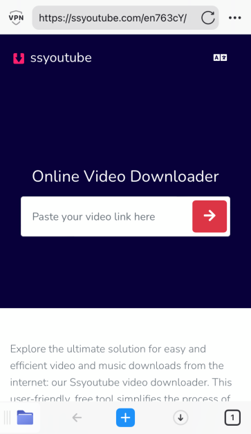 ステップ4:に切り替えますブラウザタブに行きますWebサイトYouTubeビデオのダウンロードに特化しています。 SsyoutubeとPastedownloadは良い例です。