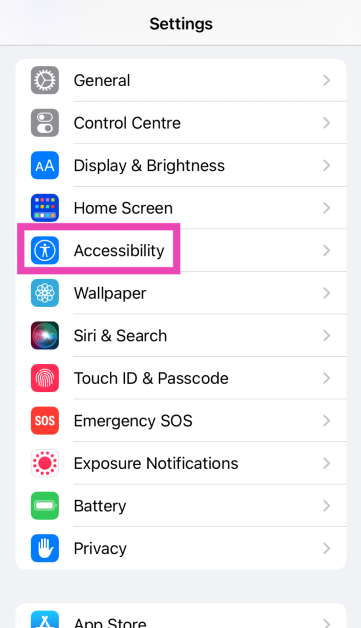 ステップ1:行きます設定選択しますアクセシビリティ。