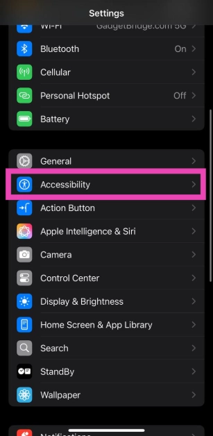 ステップ1:行きます設定選択しますアクセシビリティ。
