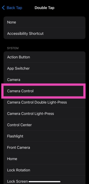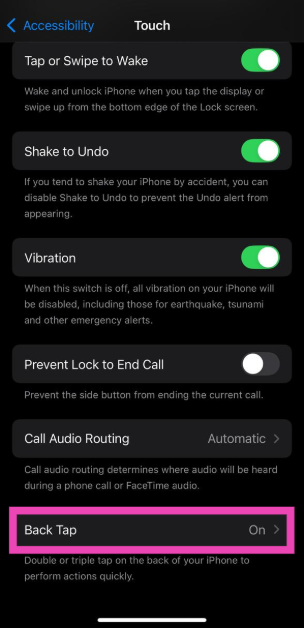 行きます設定>アクセシビリティ> [タッチ]> [バックタップ]>ダブルタップコントロールセンターを選択します。次に、バックパネルを2回タップしてコントロールセンターにアクセスします。