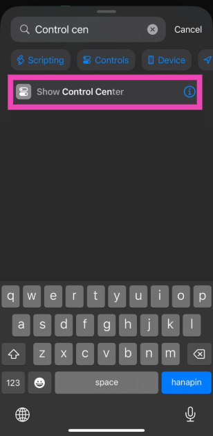 ステップ3:選択しますコントロールセンターを表示しますリストから。