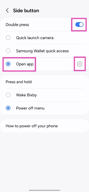ステップ3:トグルスイッチをオンにしますダブルプレス選択しますオープンアプリ。