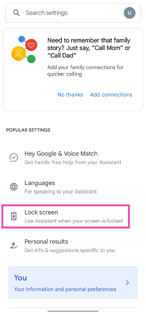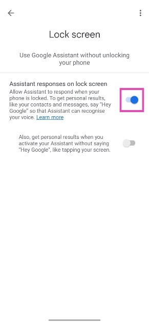 ステップ4:トグルスイッチをオンにしますロック画面のアシスタント応答。