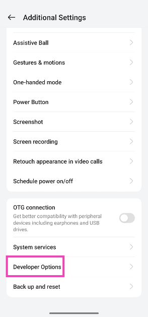 ステップ3:下にスクロールしてタップします開発者オプション。