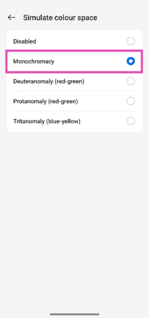 行きます設定>アクセシビリティとコンビニエンス>アクセシビリティ>ビジョン、「カラービジョンの強化」を有効にし、「グレースケール」をタップします。