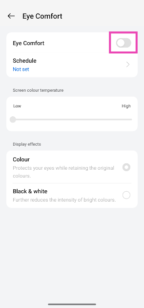 ステップ3:次のトグルスイッチをオンにします目の快適さ。