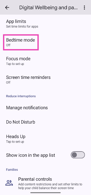 デジタルウェルビーイング設定でベッドタイムモードを使用します