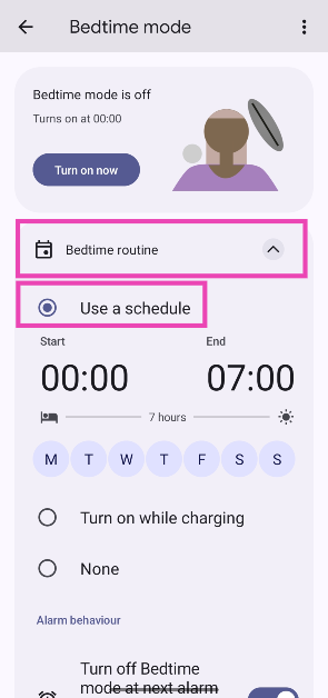 ステップ3:タップします就寝時のルーチンaを設定しますスケジュール。