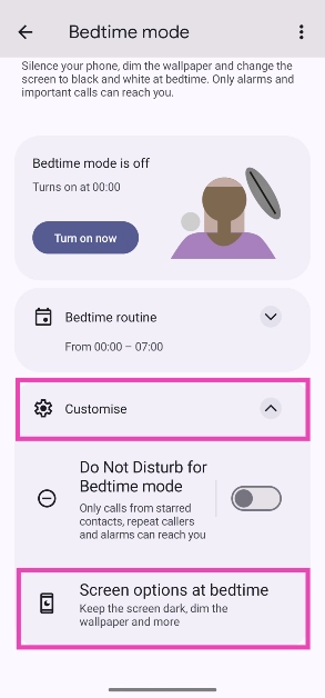 ステップ4:タップしますカスタマイズ選択します就寝時の画面オプション。