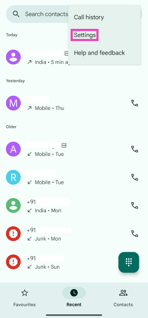 ステップ1: 打ち上げGoogleダイヤラーアプリとに切り替えます最近のタブ。