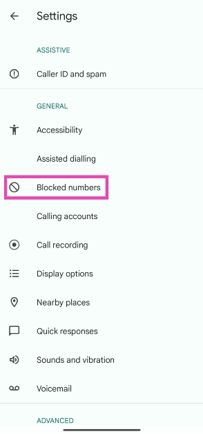 ダイヤラーアプリに移動し、楕円をタップし、[設定]> [ブロックされた番号]に移動して、ブロックリストを表示します。