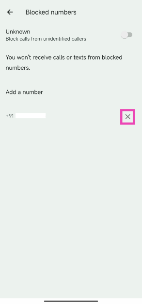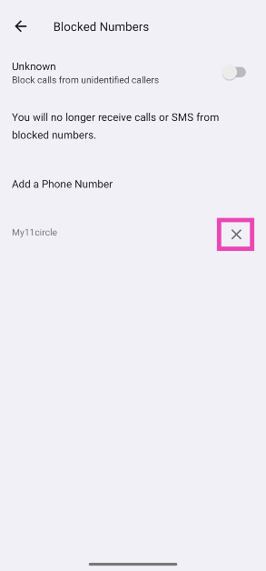 ステップ6:ヒットしますクロスアイコンブロックを解除したい番号の隣。