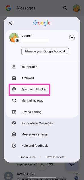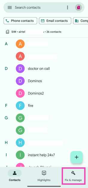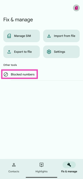 Google連絡先アプリに移動し、「修正&管理」をタップし、[ブロックされた数字]を選択し、ブロックを解除する番号の横にあるクロスサインを押します。
