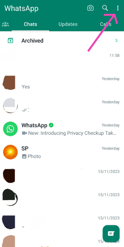 ステップ3:プライマリスマートフォンでWhatsAppを開き、タップします楕円画面の右上隅に。選択しますリンクされたデバイス。