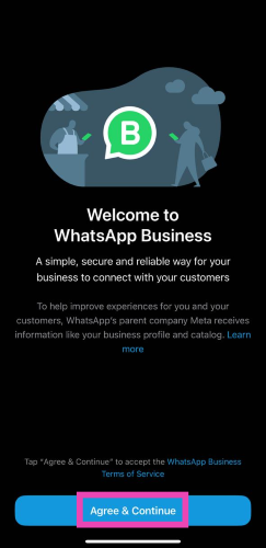 ステップ2:WhatsApp Businessを起動し、に同意します利用規約。