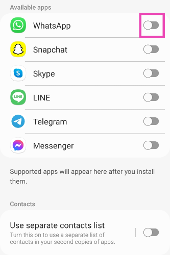 ステップ3:オンにしますトグルスイッチWhatsAppの場合。