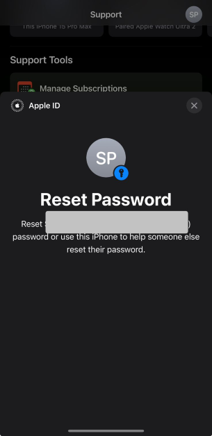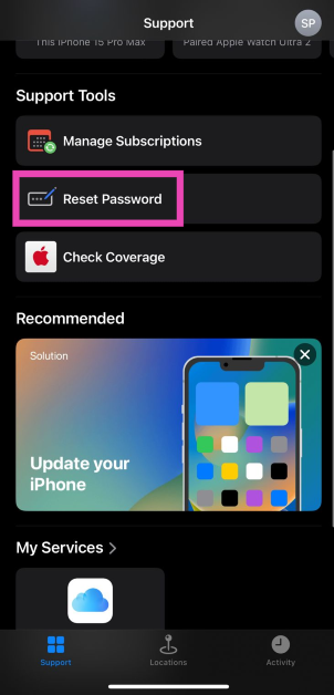 ステップ2:下にスクロールしますサポートツールタップしますパスワードをリセットします。
