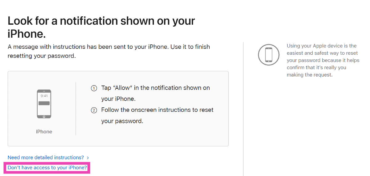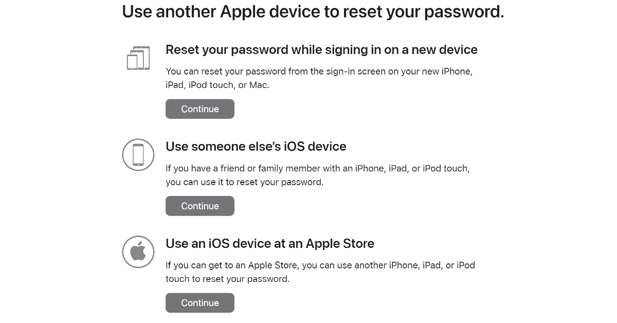 ステップ4:下にスクロールして選択これらのオプションのいずれかを使用できませんか?「iPhoneやその他のAppleデバイスにアクセスできない場合。