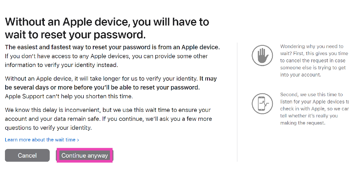 Appleはあなたの要求を評価し、24時間以内にあなたに連絡します。リクエストが受け入れられた場合、Apple IDのパスワードを変更できます。