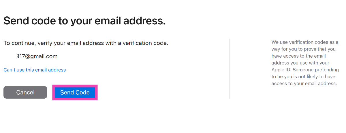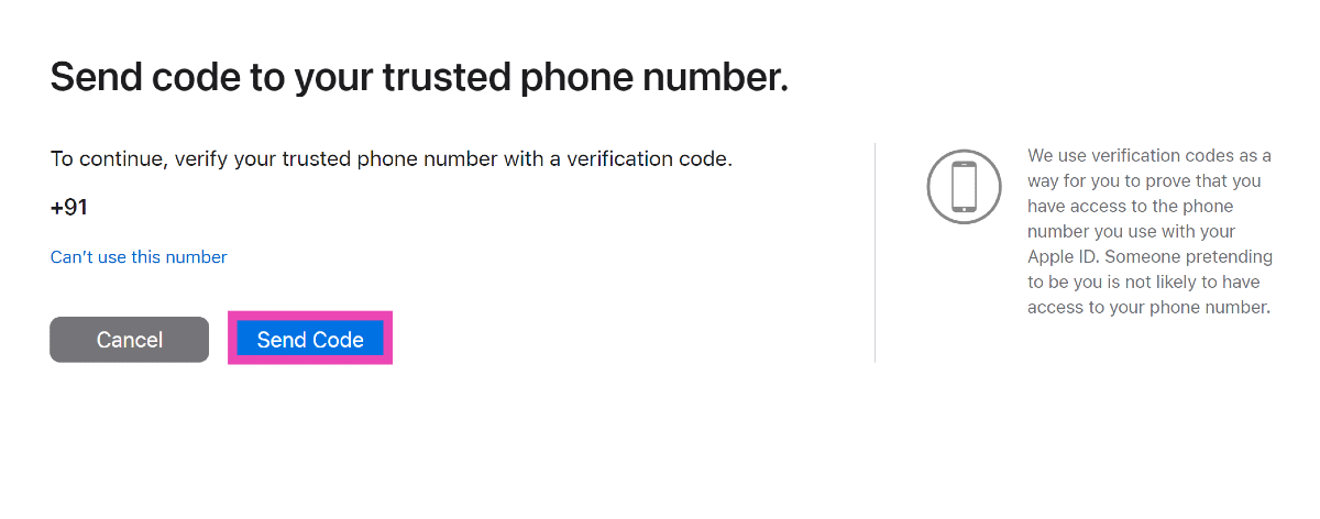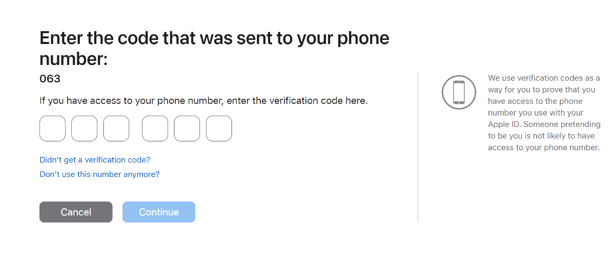 ステップ6:あなたの身元を確認するために、コードを送信しますApple IDに登録されている番号に。