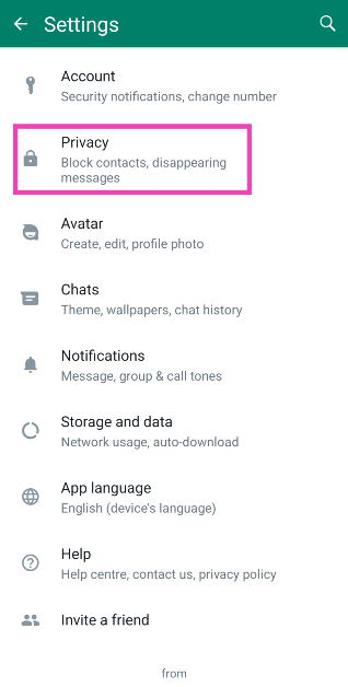 WhatsAppを起動して行きます設定>プライバシー>ブロックされた連絡先ブロックリストを表示します。