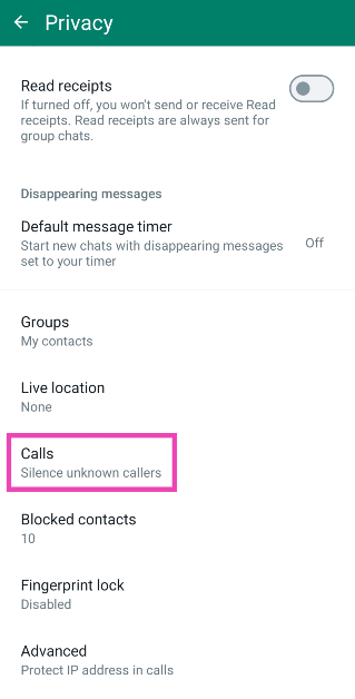 whatsappの不明な数字からの呼び出しをmuteすることができます設定>プライバシー>通話そして、「沈黙の不明な発信者」の横にあるトグルスイッチをオンにします。