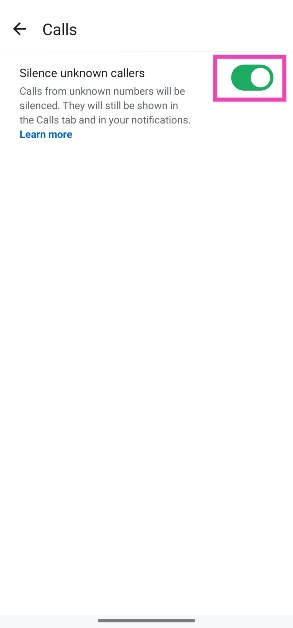 ステップ5:次のトグルスイッチをオンにします未知の発信者を沈黙させます。