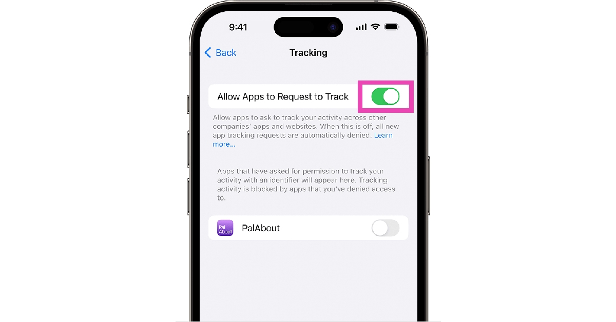 ステップ3:「アプリが追跡することを要求することを許可する」ために、トグルバーを無効にします。