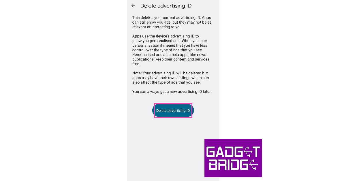 Androidでの広告トラッキングを無効にするには、移動します設定>プライバシー>広告>削除広告ID。