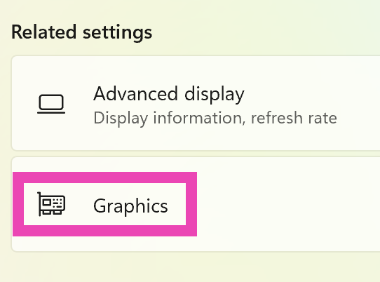 ステップ3:下にスクロールしてクリックしますグラフィックス下関連設定。