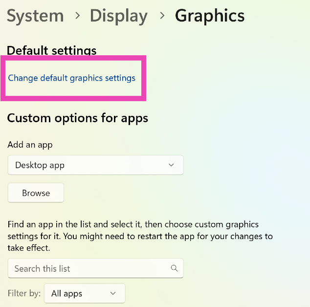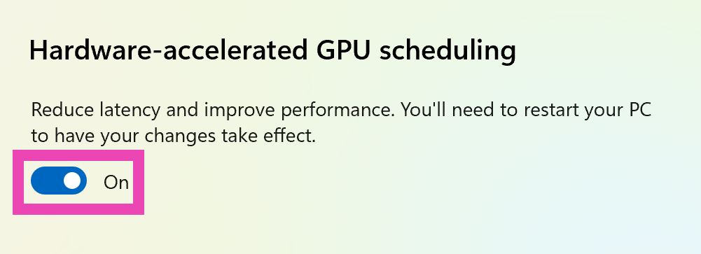 ステップ4:オンまたはオフのトグルスイッチをオンにしますハードウェアアクセラレーションGPUスケジューリング。