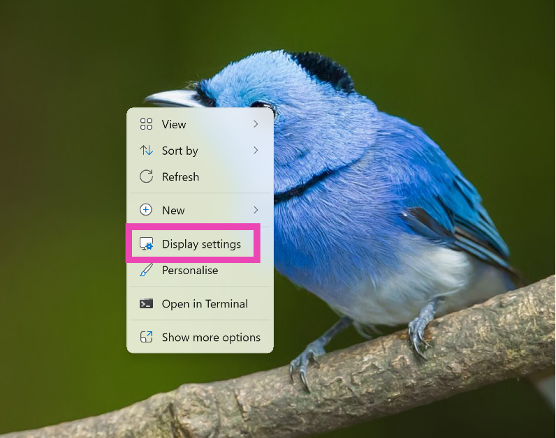 ステップ1:デスクトップを右クリックして選択します設定を表示します。