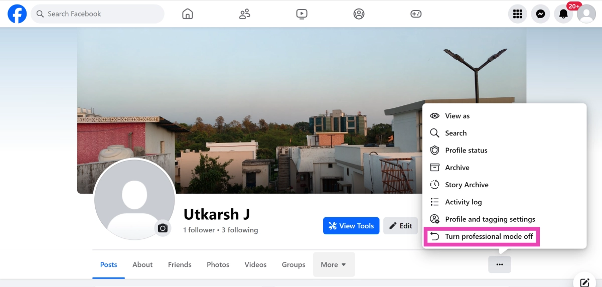 ステップ1:のFacebookプロフィールに移動しますアプリまたはWebサイト。