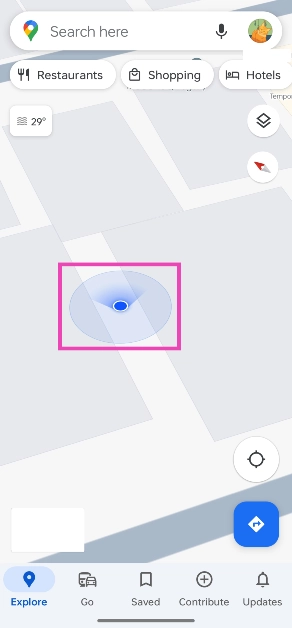 ステップ2:ヒットしますより最近のアイコンそして、青い円があなたの場所に配置されていることを確認してください。