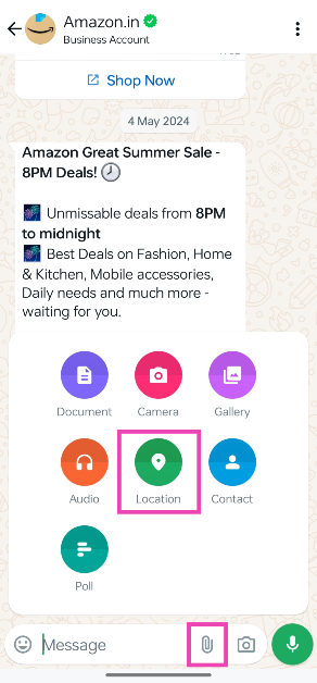 ステップ2:ヒットしますアタッチメントアイコンメッセージボックスで選択します位置。