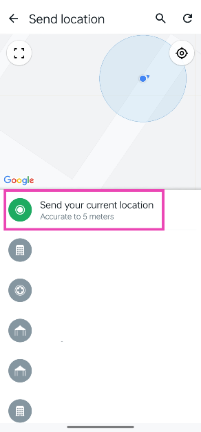 ステップ4:タップします現在の場所を送信します。動いている場合は、タップしてくださいライブロケーションを共有します。