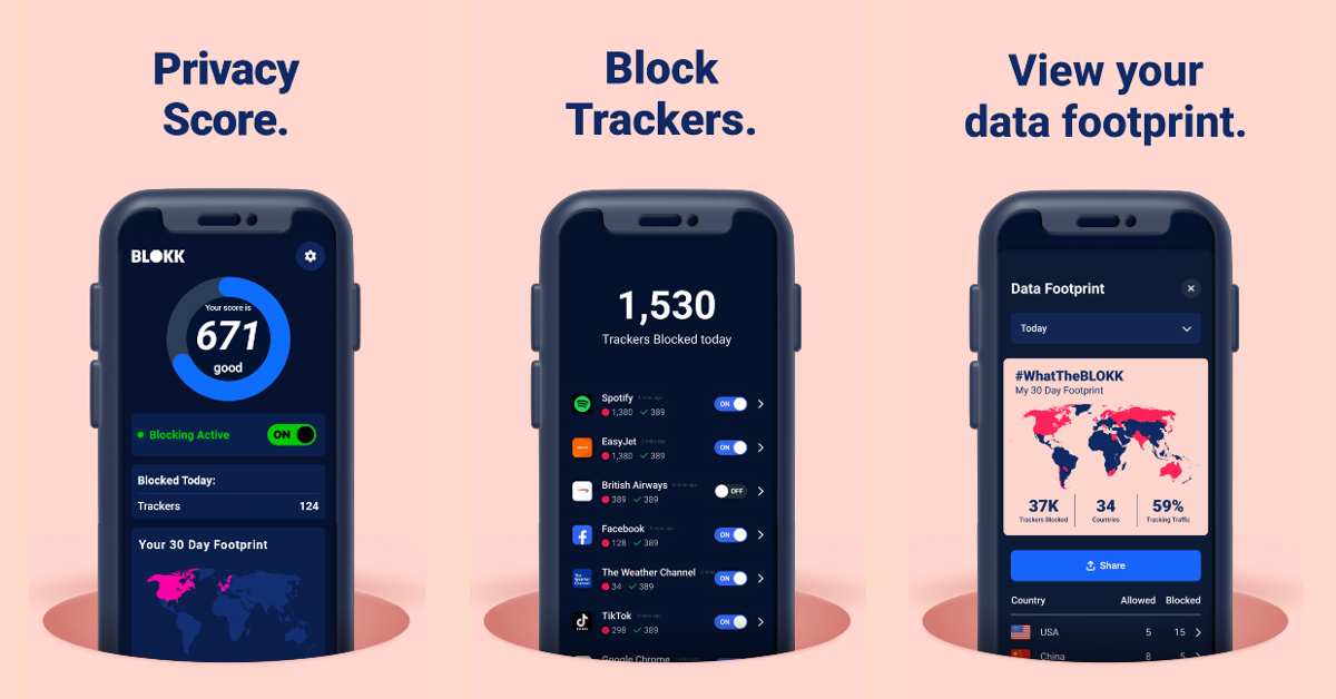 携帯電話の他のアプリがデータの追跡を防ぐために使用できる最高のアプリの1つです。このアプリは、デバイスにインストールされているアプリからブロックしたトラッカーの数をリアルタイムで分析します。詐欺のウェブサイトに着陸すると、Blokkは悪意のある意図についてお知らせするために簡単な通知をお送りします。特定のアプリをホワイトリストに掲載し、特定のトラッカーがデータにしがみついているのを手動でブロックすることもできます。