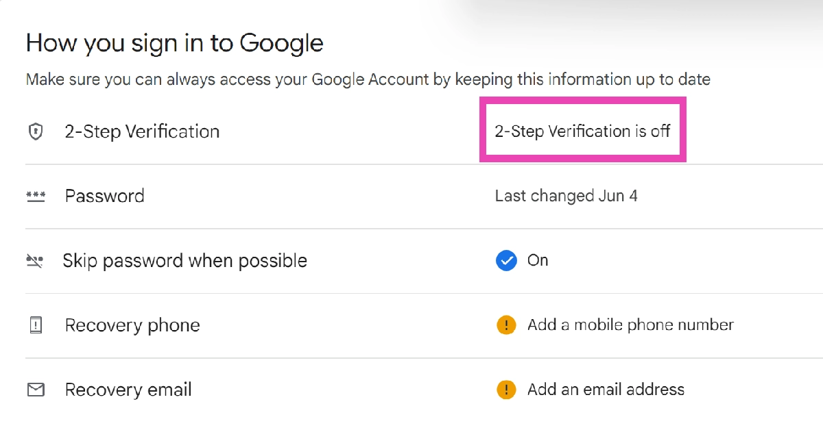 ステップ6:クリックしてください2段階の検証をオンにします。