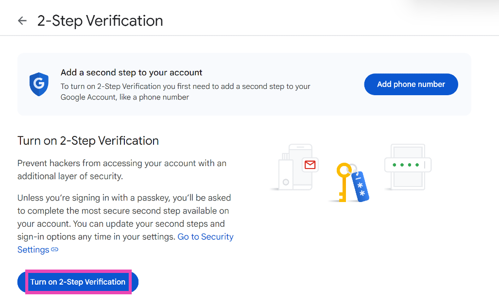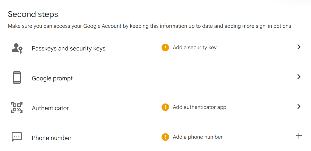 ステップ5:どのようにしたいかを選択してください確認するログインの試み。 Googleは、PassKeysとSecurity Keys、Googleのプライマリデバイスのプロンプト、Authenticatorアプリ、および電話番号など、次のオプションを提供します。
