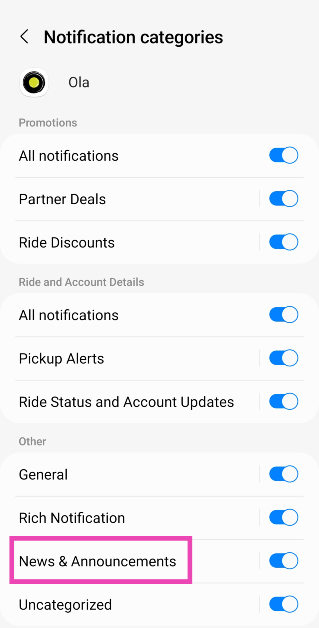 ステップ4:トグルスイッチを確認してください通知を表示しますオンになってタップします通知カテゴリ。
