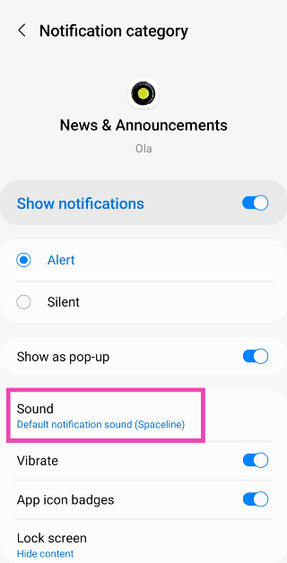 ステップ5:を選択しますカテゴリ通知サウンドを変更する必要があります。
