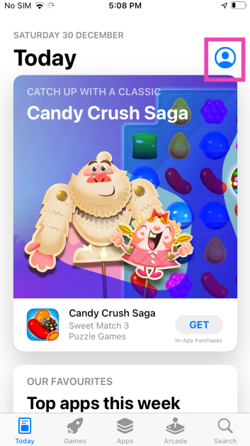 ステップ2:タップしますプロフィールアイコン画面の右上隅に。