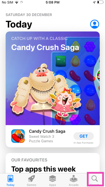 ステップ2:タップします検索画面の右下隅にあるタブ。