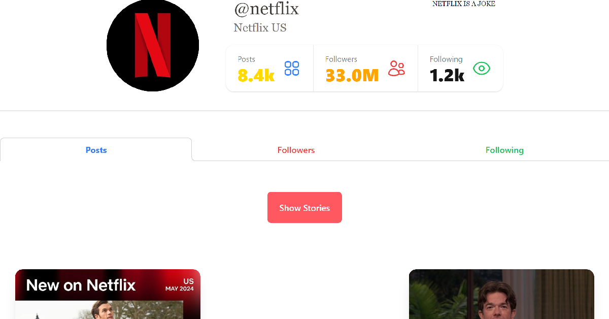 プロフィールを介して誰かのInstagramフィードを表示したくない場合は、希望するWebブラウザーのIncognitoモードを使用してください。 Google Chromeでは、Ctrl + Shift + Nを押してIncognitoモードをトリガーできます。instagram.com/1.sername]。たとえば、NetflixのInstagramフィードを表示する場合は、instagram.com/netflix。投稿を表示するには、それを右クリックして[新しいタブで[リンク]を開く]を選択します。