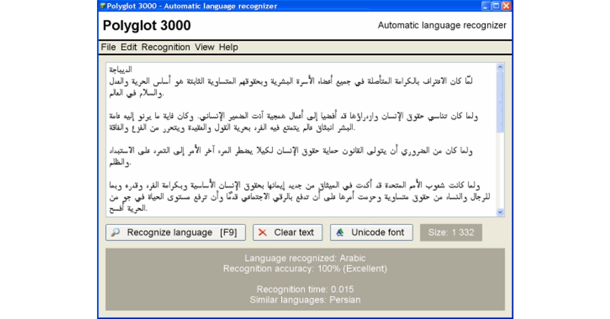 PolyGlot 3000は、400以上の言語を識別できるWindowsツールです。このツールをPCで実行するためにインターネットアクセスは必要ありません。 PolyGlot 3000をその場所からダウンロードします公式ウェブサイトPCにインストールします。ツールが実行されたら、任意のテキストをボックスに貼り付けることができ、数秒以内に言語を認識します。それに加えて、結果の精度も教えてくれます。