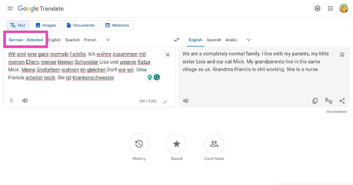 ステップ3:ヒットします翻訳するアイコン。