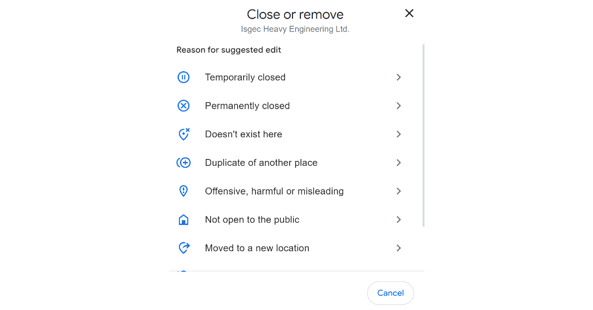 あなたに属さないビジネスリストを削除することはできませんが、Googleマップを使用すると、人々は間違った場所や閉鎖企業を報告できます。これがあなたがそれをする方法です。